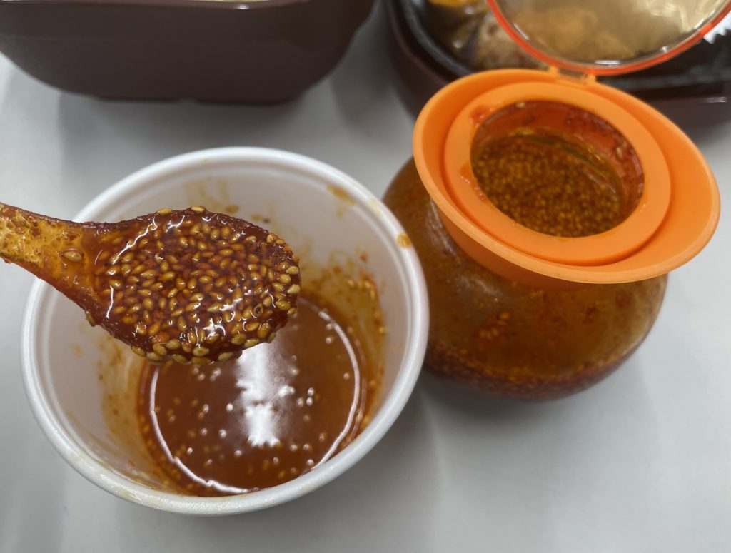 ものすごく辛そう…😅💦💦とビビッて直接かけるのではなく、別の容器にスプーン1杯分入れてチャレンジしました😆👍