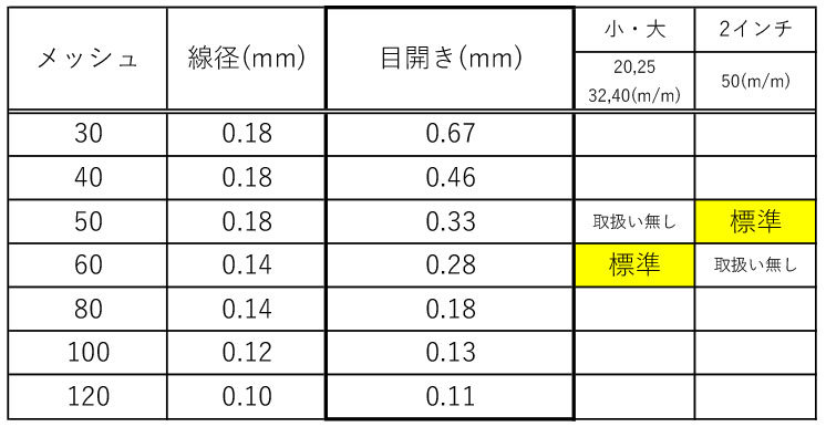 メッシュの隙間の寸法は以下の通りです。