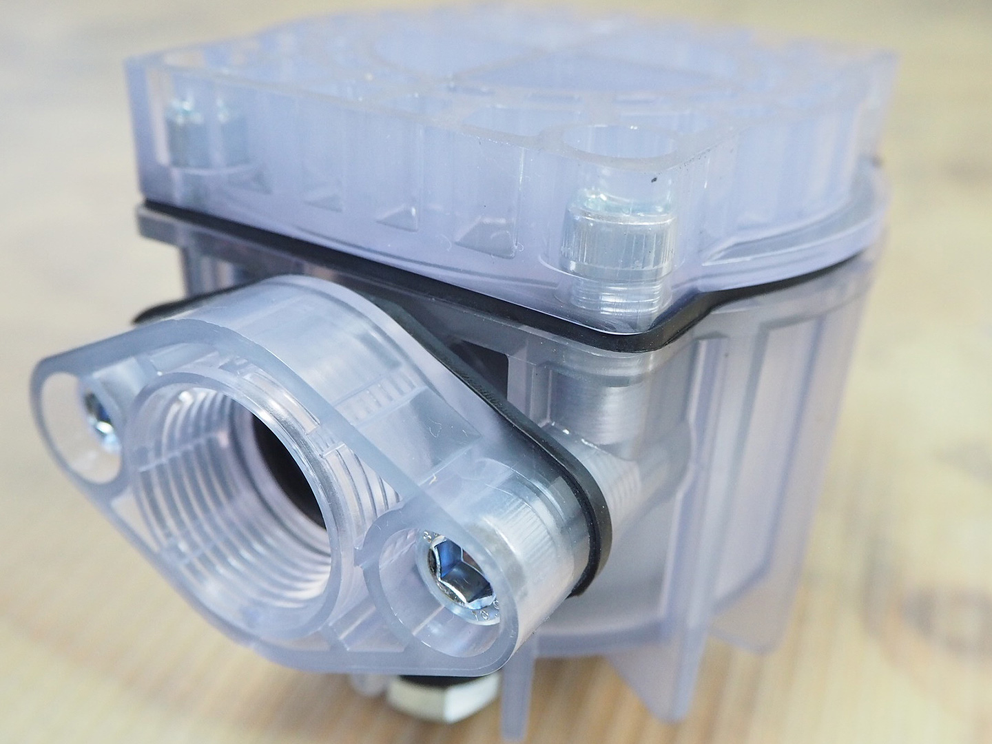 取付方向を間違えて水の流れが逆になってしまうと、本来の砂や異物が溜まる場所と異なる場所に溜まってしまう為、ドレンボルトから除去することが出来ません。製品の上面に水の流れを示す矢印がありますので、取付方向をご確認下さい。